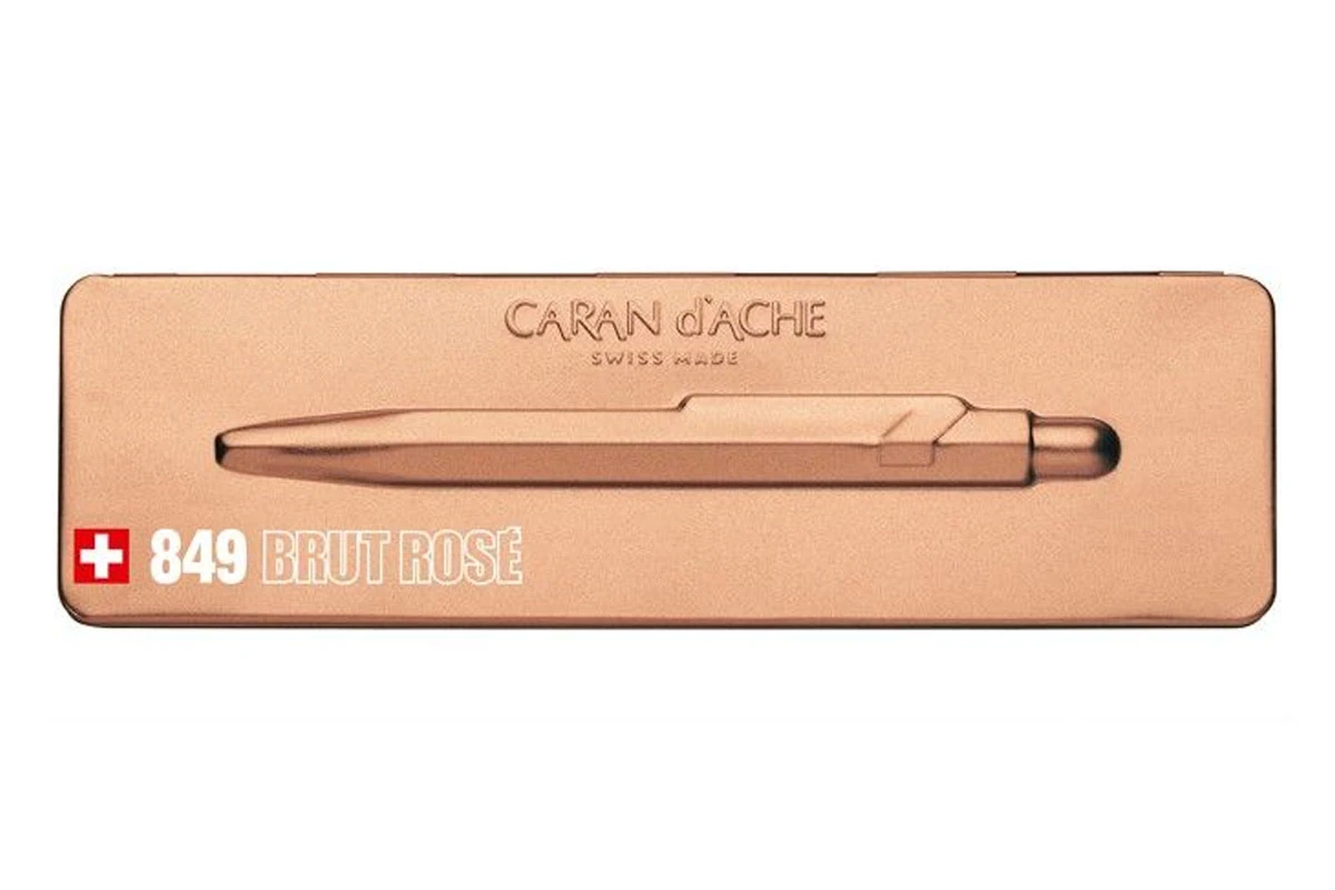 Deze versie van de symbolische 849 van Caran d’Ache maakt over de hele linie indruk. Zijn naam: BRUT ROSÉ. Het geheim: Sprankelend en vrouwelijk, met een chique goud rosé kleur, die schrijven puur plezier maakt. Deze 849 straalt glamour uit met verfijning en elegantie. De iconische vorm ligt comfortabel in de hand en het mooie magnetische metalen doosje onderstreept het sierlijke silhouet nog eens. De 849 BRUT ROSÉ is een ideaal cadeau en zal zeker een onmisbaar, oogverblindend favoriet accessoire worden.