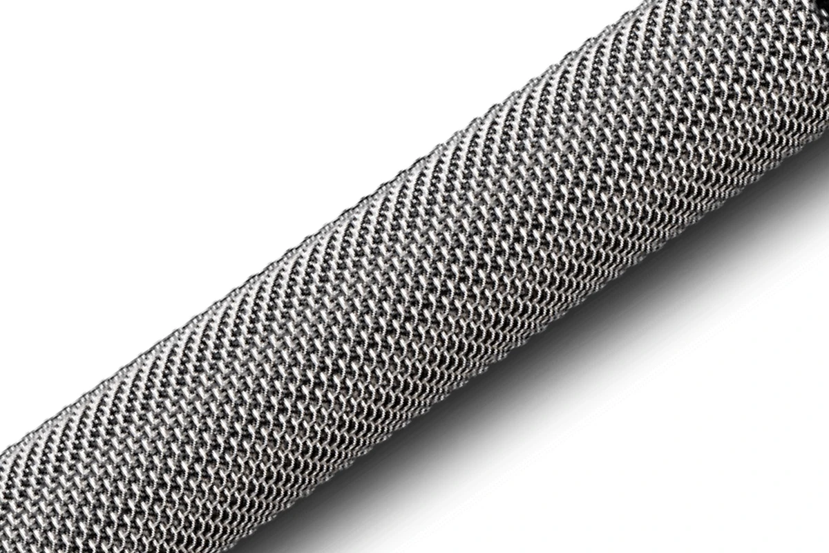 De laag is gemaakt van roestvrijstaal en is fijn gewoven, wat de Varius Ivanhoe iets speciaals geeft; het past wonderbaarlijk goed bij de verzilverde, gerhodineerde, afwerkingen.