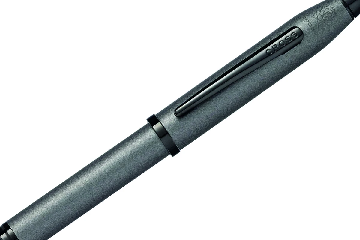 Deze nieuwe grijze kleur is een gedurfde versie van de klassiekere Cross pennen. Het lichaam is vervaardigd uit edelmetaal met een satijne finish. De afwerkingen zijn gepolijst zwart met PVD coating. Het gewicht van de materialen is met precisie afgewogen voor optimaal schrijfcomfort. De pen wordt geleverd in een luxe doos.