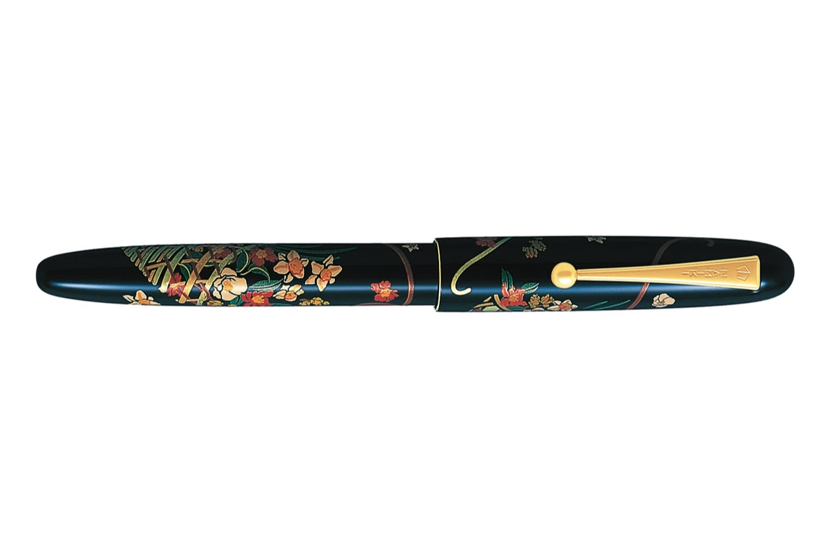 Het ontwerp wordt gemaakt met gekleurde lagen Urushi lak en ruwe lak, en dit wordt bedekt met een laagje goudpoeder. Na het drogen worden verschillende extra lagen lak aangebracht. Wanneer deze lagen zijn uitgehard, wordt de pen gepolijst om een diepe glans te geven.