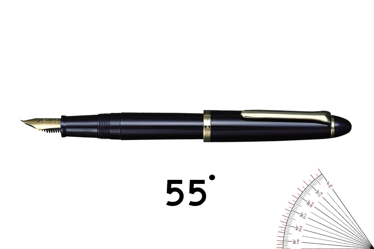 Deze Fude de Mannen vulpen van Sailor is oorspronkelijk gemaakt voor kalligrafie, maar werd ook populair voor andere doeleinden zoals skechting en journalling. Door de schuine punt (55º) varieert de dikte van de lijn als je de pen beweegt. Als u de pen onder een hogere hoek omhoog houdt, krijgt u een dunne lijn op het papier en als u de hoek verlaagt ontstaan er dikkere lijnen.