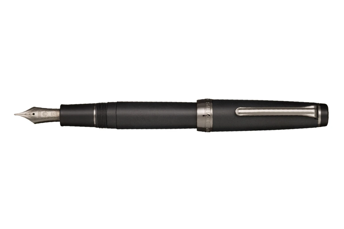 Deze vulpen uit de bekende Pro Gear reeks van Sailor heeft een 21-karaats gouden penpunt. Het ontwerp is tijdloos en uniek, met het Sailor Anchor Logo op de dop. Het lichaam is vervaardigd uit hars. De pen kan worden gebruikt met een converter of met inktpatronen. De Imperial Black vulpen is volledig zwart met ruthenium afwerkingen.
