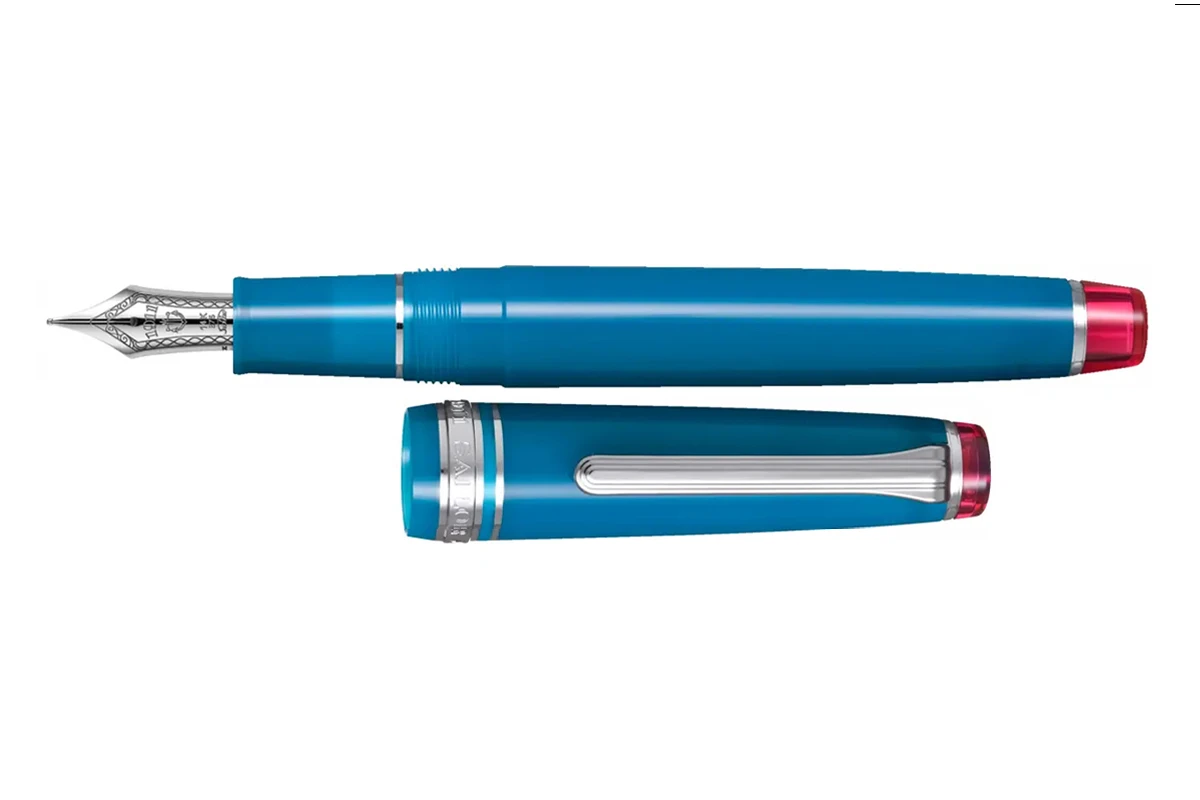 De pen is afgewerkt met zilveren details en een 14K gouden penpunt, en wordt geleverd met een converter.