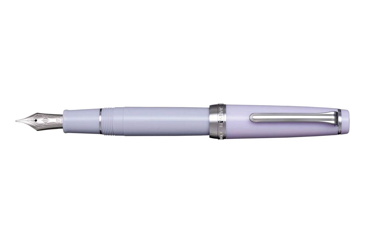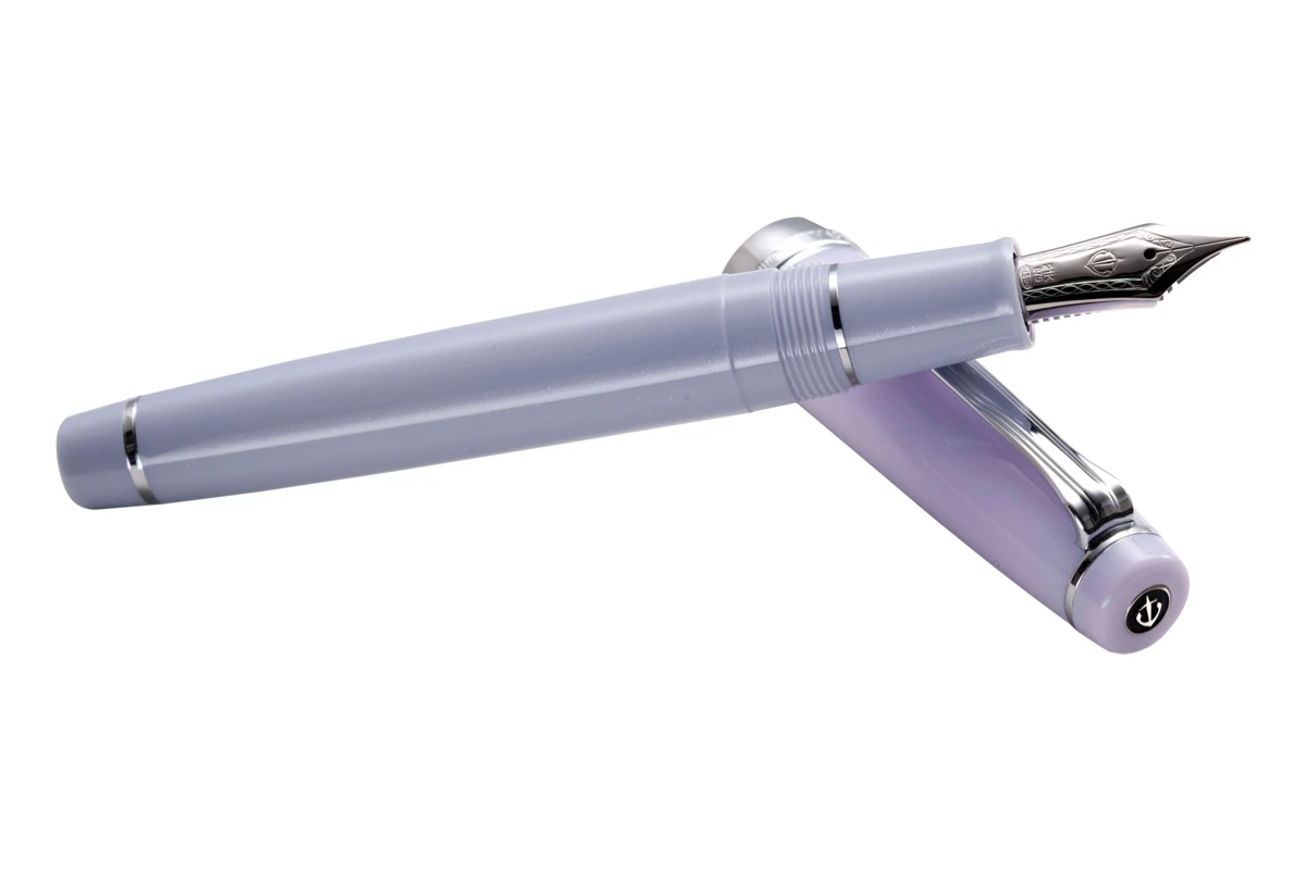 De pen is afgewerkt met een 21K gouden penpunt met rhodium plating en witgouden accenten, vergezeld met een zacht lila gekleurd lichaam. Verder wordt de pen geleverd met een converter.