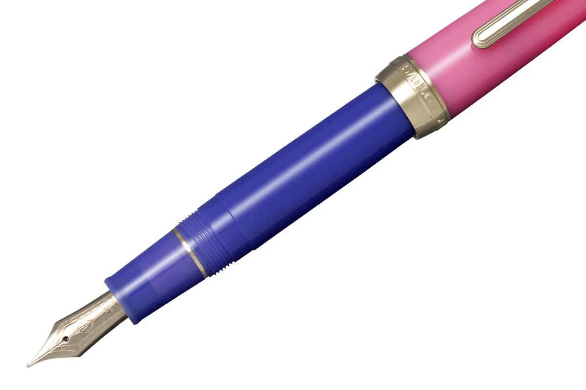 De pen is afgewerkt met een 21k gouden penpunt met rhodium plating, vergezeld door een lichaam van paars en roze. Verder wordt de pen geleverd met een converter.