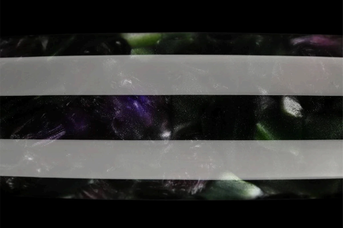Het lichaam van de pen, dat in de vorm van de Dorische zuil glijdt, wordt met de hand van een stevige staaf gedraaid. Het oppervlak is geïnspireerd op het spektakel van de natuur genaamd “La Fiorita” van Castelluccio di Norcia. Daarom heeft het donkere lichaam paarse en groene kleuraccenten, die het mysterie van de natuur vertegenwoordigen. De dop, houder en knop beschrijven een statig object met een neoklassiek, elegant en tijdloos design. Verder is de clip gemaakt van platina en is de penpunt gemaakt van 18kt stub in 1,4 mm, wat zorgt voor de meest vloeiende schrijfervaring.
