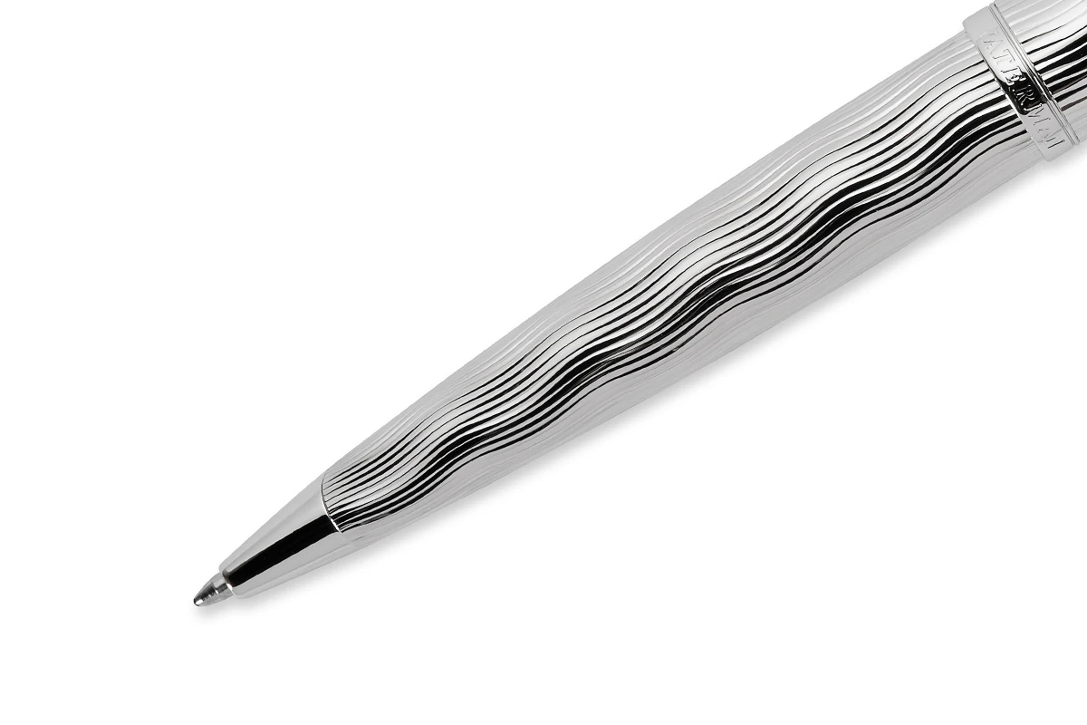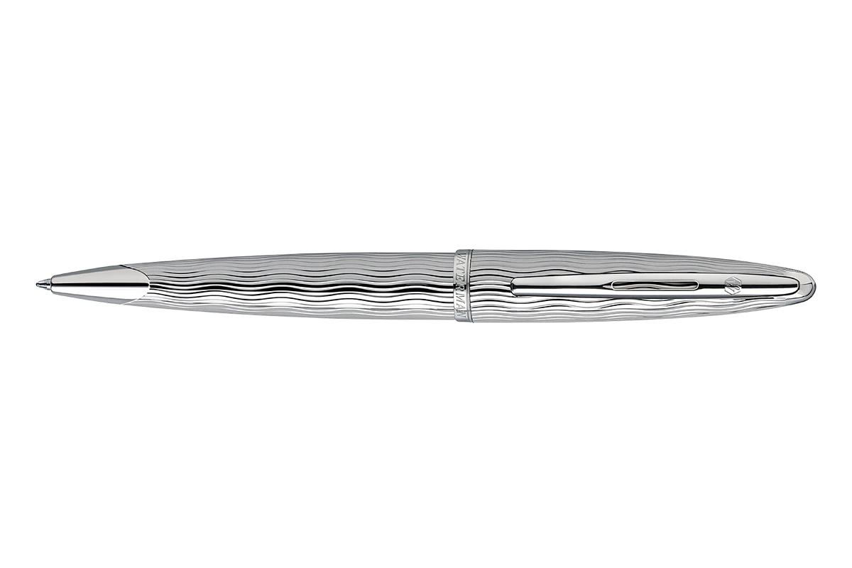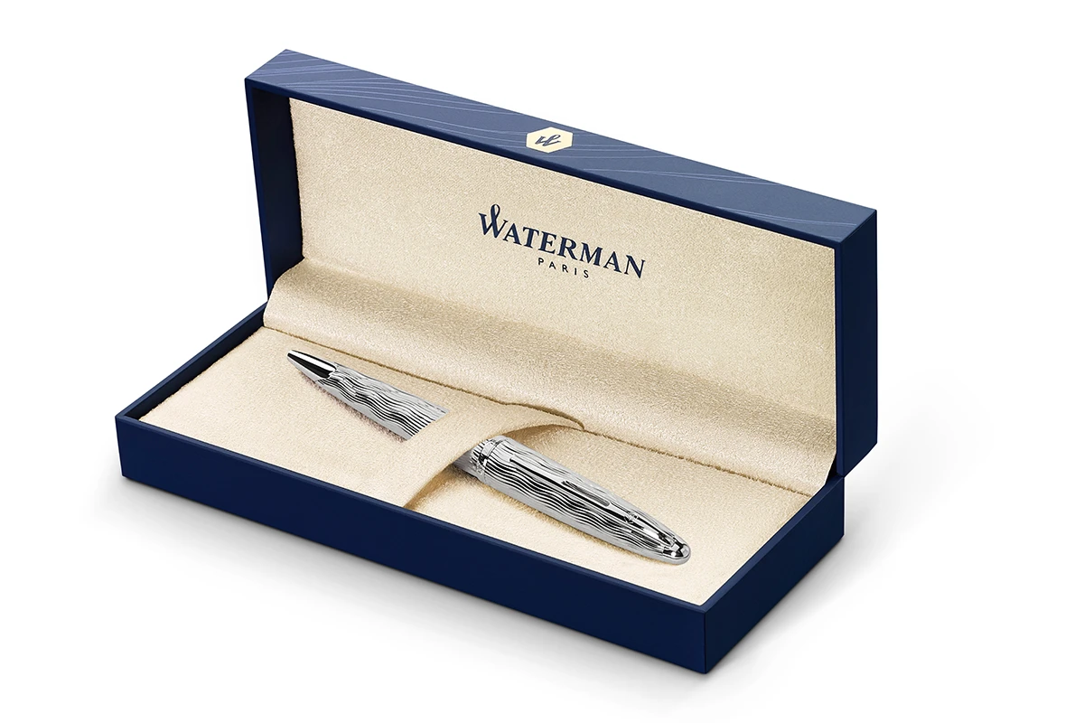 Carène heeft zijn hoogste punt bereikt in de innovatie uitbraak. Met inspiratie van luxe bootontwerpen is het resultaat het meest vooraanstaand voorbeeld van een hernieuwde visie. De zuivere vloeibare krommen vormen de mooiste lijnen van een sportcruiser of de golvende zeilen van een luxe jacht bij het bestuderen van de vervaardigde edele materialen zoals een kunstenaar oog voor detail heeft. De rijke creativiteit van Waterman’s monochroom en onberispelijke ontwerpen worden uitgestraald door gekrulde luminescerende zilveren krommen en omhelsd met palladium details. De clip heeft een palladium afwerking. De ultieme inkt geeft u de gelegenheid om uw spontaniteit uit te drukken en vrij te zijn in uw keuzes.
